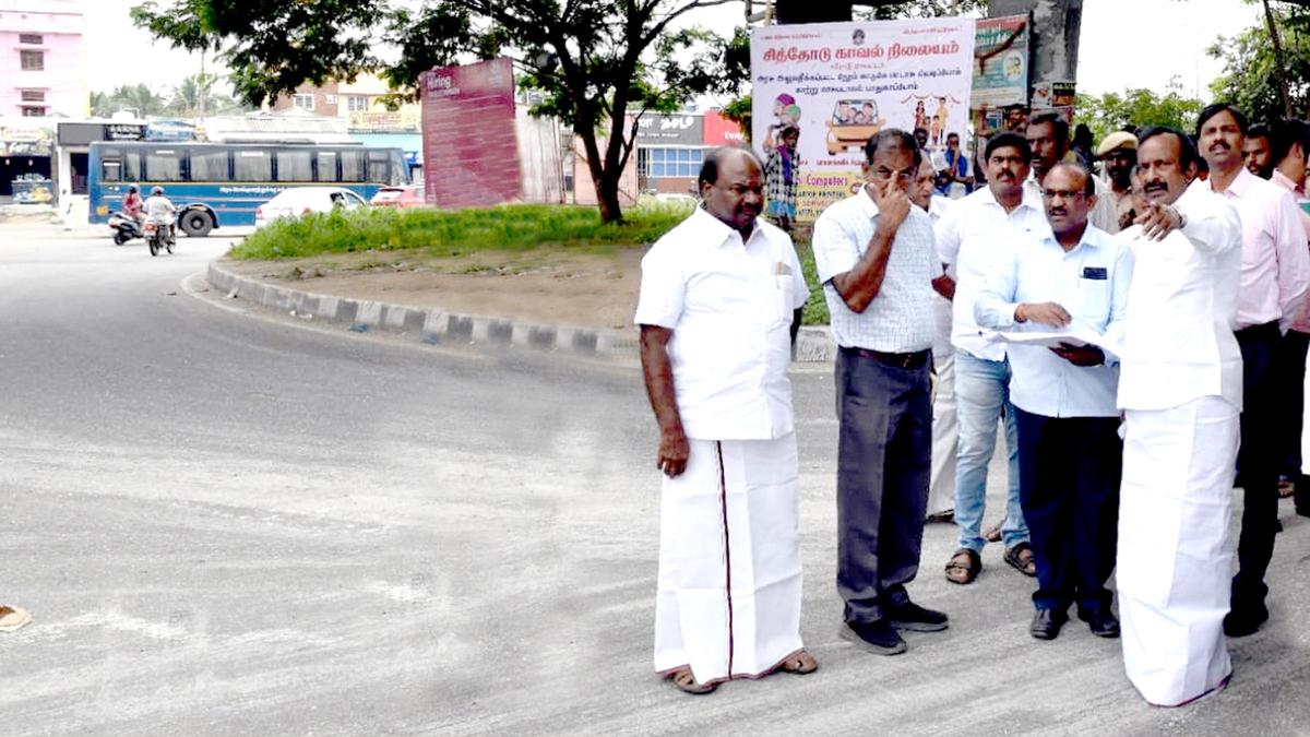 Minister S. Muthusamy inspecting the proposed site for a new flyover on National Highway 544 at Lakshmi Nagar junction in Erode in Tamil Nadu on Wednesday.
