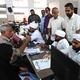 Booth Level Officers (BLO) and assistant workers check and collect the enumeration forms as residents queue up to submit the forms for the special intensive revision (SIR) of electoral rolls at Ghogomali area, in Siliguri on Saturday.