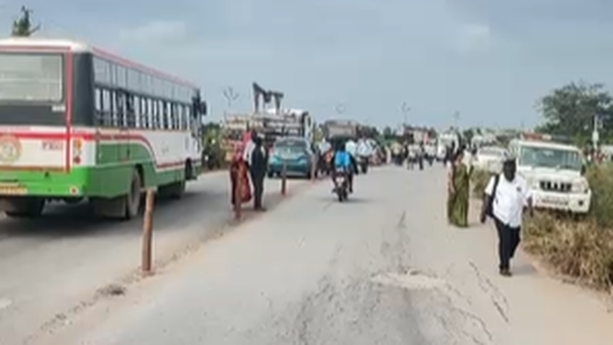 The Mirajguda-Khanapur road in Chevella mandal of Rangareddy where a tipper lorry hit a Telangana State Road Transport Corporation (TGSRTC) bus on Monday (November 3, 2025) morning