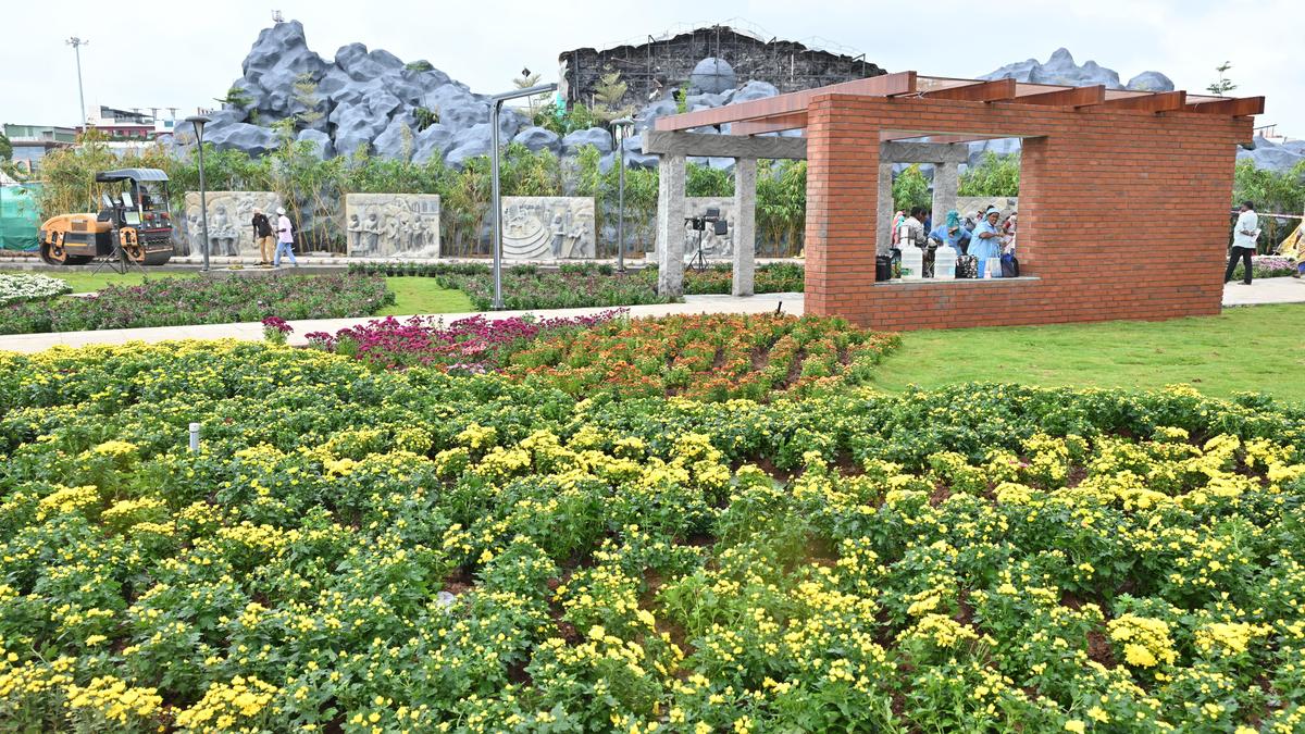 Final stages of planting and landscaping under way at Semmozhi Poonga in Coimbatore city on Monday.