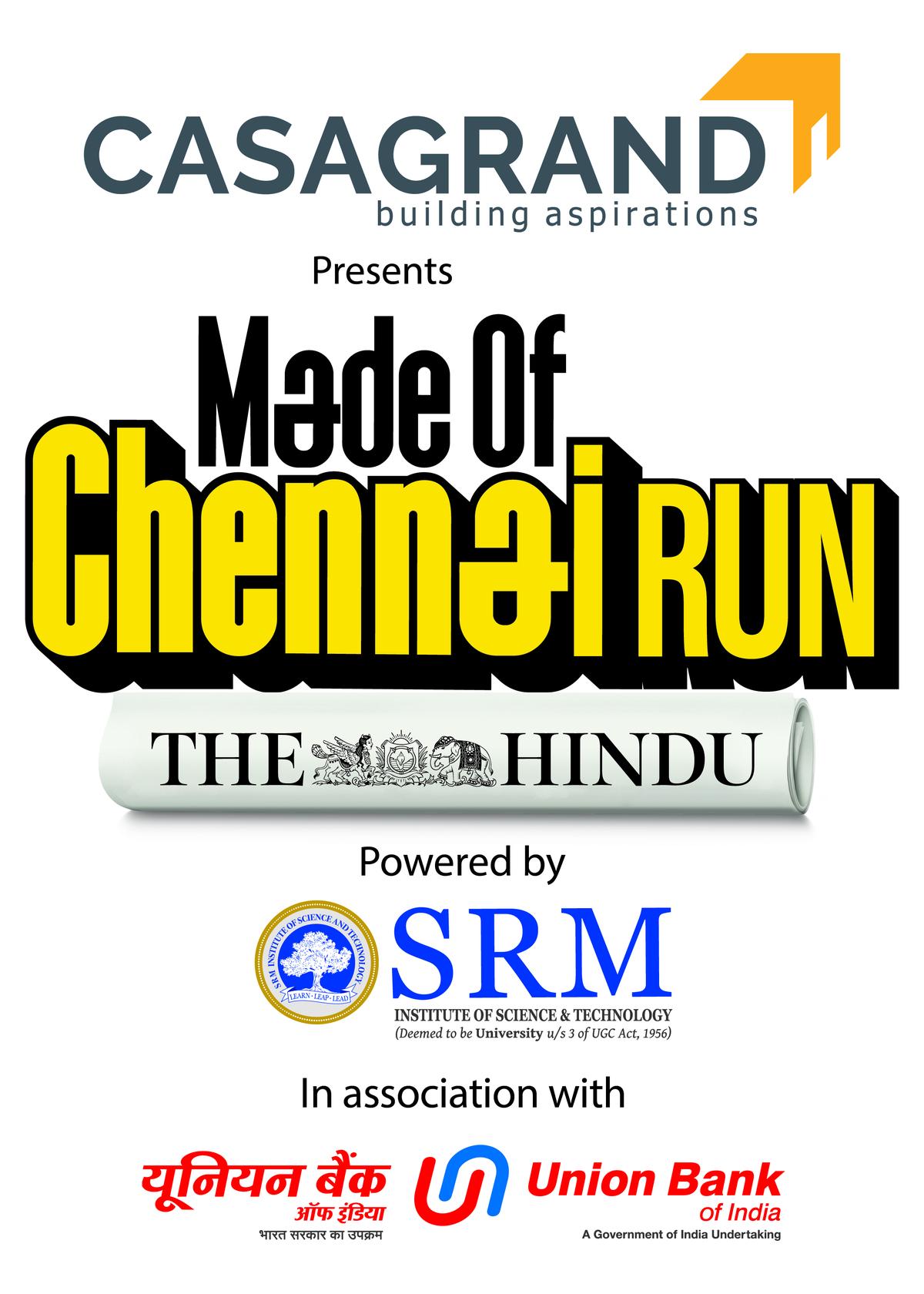 The Hindu Made of Chennai Run that ended at Island Grounds was presented by Casagrand, powered by SRM institute of Science and Technology, in association with Union Bank of India and co-hosted by Chennai Runners. The associate partners were Tata Tea Chakra Gold, Tata Coffee, Gold Winner and LIC. The activewear partner was Technosport and food partner was Nithya Amirtham. The event was conducted in partnership with Tamil Nadu Tourism Development Corporation, Greater Chennai Corporation, Greater Chennai Police, Greater Chennai Traffic Police and Namma Marina, Namma Pride. Radio Partners were Big FM, Fever FM and Radio One. Hydration Partner was Parry Foods.