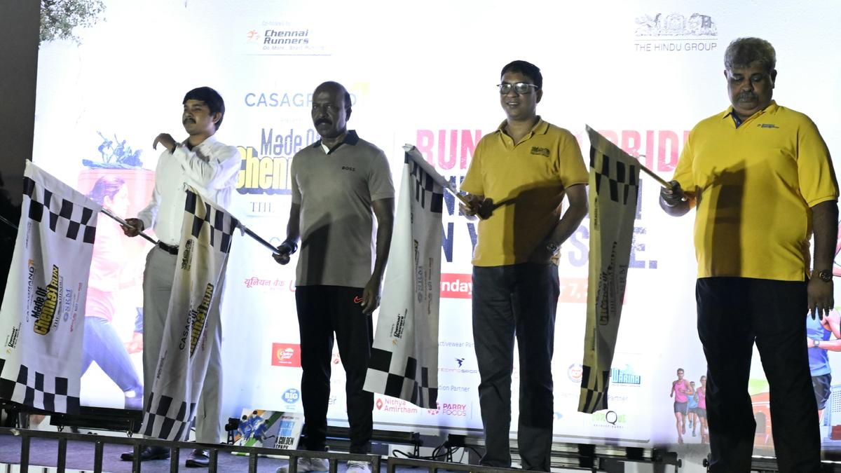 The Hindu Made of Chennai Run that ended at Island Grounds was presented by Casagrand, powered by SRM institute of Science and Technology, in association with Union Bank of India and co-hosted by Chennai Runners. The associate partners were Tata Tea Chakra Gold, Tata Coffee, Gold Winner and LIC. The activewear partner was Technosport and food partner was Nithya Amirtham. The event was conducted in partnership with Tamil Nadu Tourism Development Corporation, Greater Chennai Corporation, Greater Chennai Police, Greater Chennai Traffic Police and Namma Marina, Namma Pride. Radio Partners were Big FM, Fever FM and Radio One. Hydration Partner was Parry Foods.