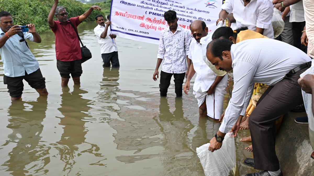 “We’d set the target of releasing over 2 lakh native breed fingerlings in the Thamirabarani before the northeast monsoon. After stocking 1 lakh fingerlings in the river at Kodaganallur during last week, we’ve released in the river 30,000 catla, 30,000 rohu and 40,000 kendai fingerlings supplied by the Fisheries Department seed production depot at Manimuthar dam on Saturday. This step will further enrich the Thamirabarani river’s healthy ecosystem besides improving the livelihood of inland fishermen,” Dr. Sukumar said.
