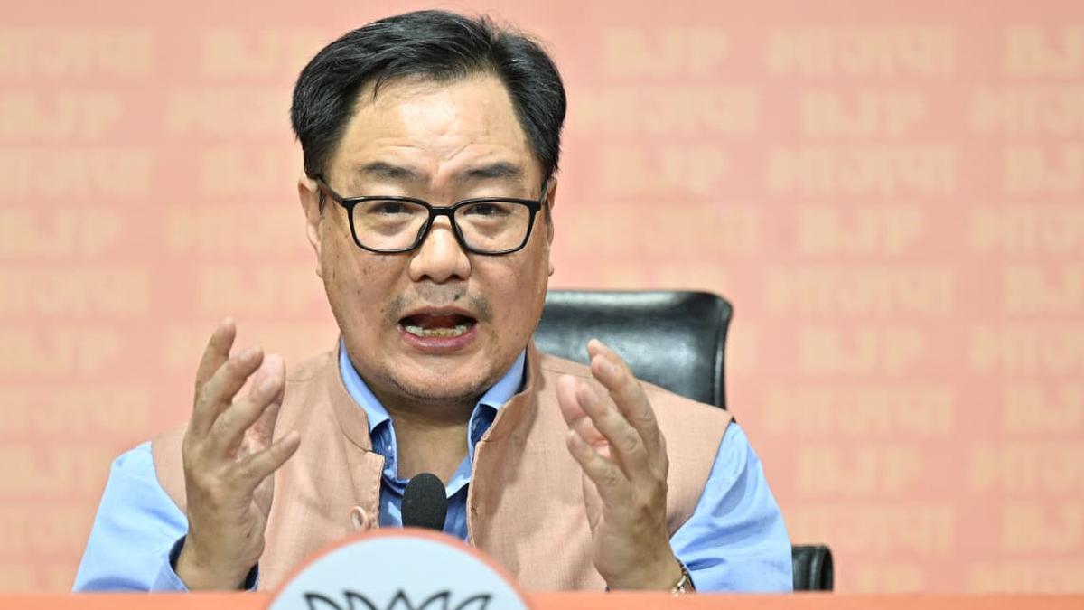 Union Minister Kiren Rijiju addresses a press conference at the BJP HQ in New Delhi on November 05, 2025.