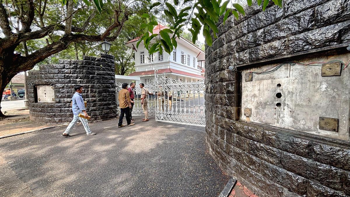 The name plate that read Raj Bhavan seen removed from the gates of the official residence of Kerala Governor in Thiruvananthapuram on Monday as Raj Bhavan gets renamed Lok Bhavan.