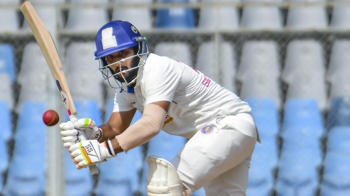 Puducherry’s Mohit Kale plays a shot during the Ranji Trophy match against Mumbai at the Wankhede Stadium, in Mumbai, Tuesday, Nov. 18, 2025.