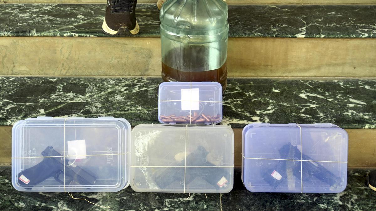 Arms recovered by three persons who were arrested by the Gujarat Anti Terrorist Squad (ATS) for their alleged involved in a conspiracy to carry out a major terrorist attack, on November 9, 2025.