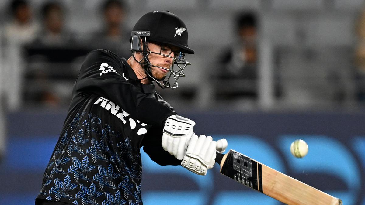 New Zealand was 48-1 after the power play, losing Devon Conway (13) in the fourth over to a ball from Matthew Forde that was angled sharply in to the left-hander and pierced his tentative defensive shot. Tim Robinson (27) was out to the first ball after the power play.