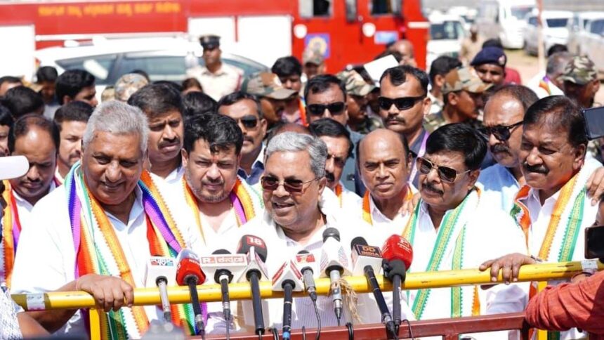 Chief Minister A Revanth Reddy, accompanied by Ministers Uttam Kumar Reddy and Komatireddy Venkat Reddy, inspected the crucial aerial electromagnetic survey launched for the Srisailam Left Bank Canal (SLBC) tunnel works.