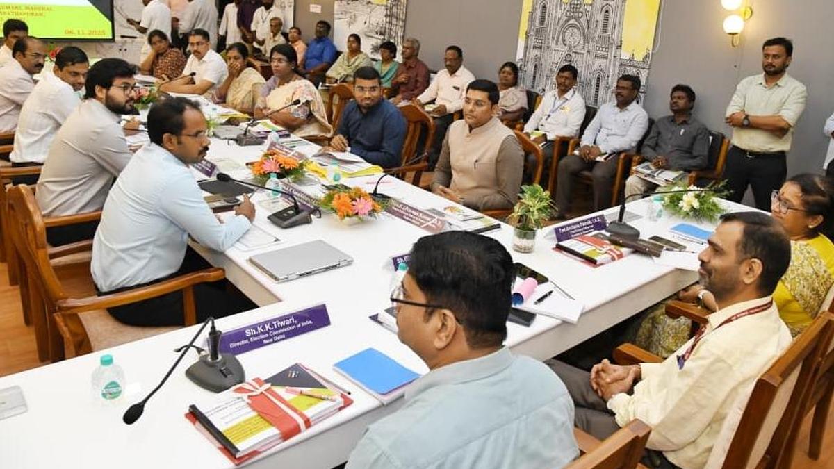 Deputy Election Commissioner Bhanu Prakash Yeturu and Director Krishna Kumar Tiwari from the Election Commission of India presided over the meeting in the presence of Tamil Nadu Chief Electoral officer Archana Patnaik.