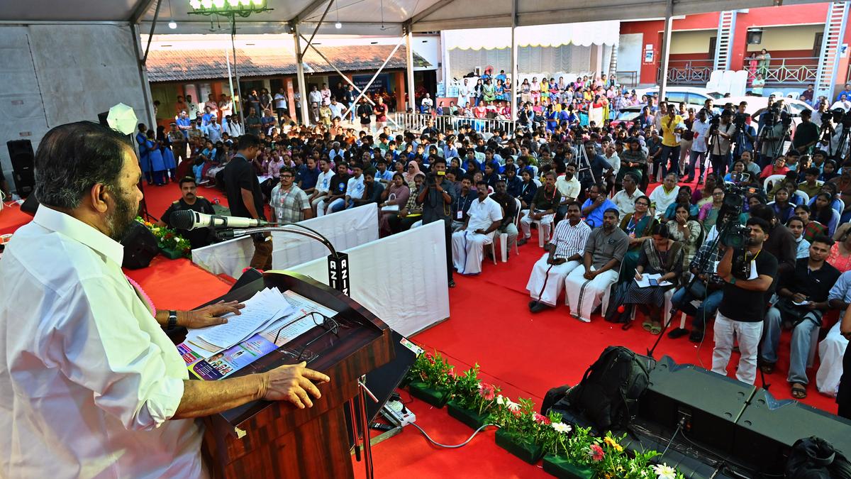 Minister for General Education V. Sivankutty inaugurating the School Sasthrolsavam, the largest science fair for students in Kerala, at Moyan’s School, Palakkad, on Friday.