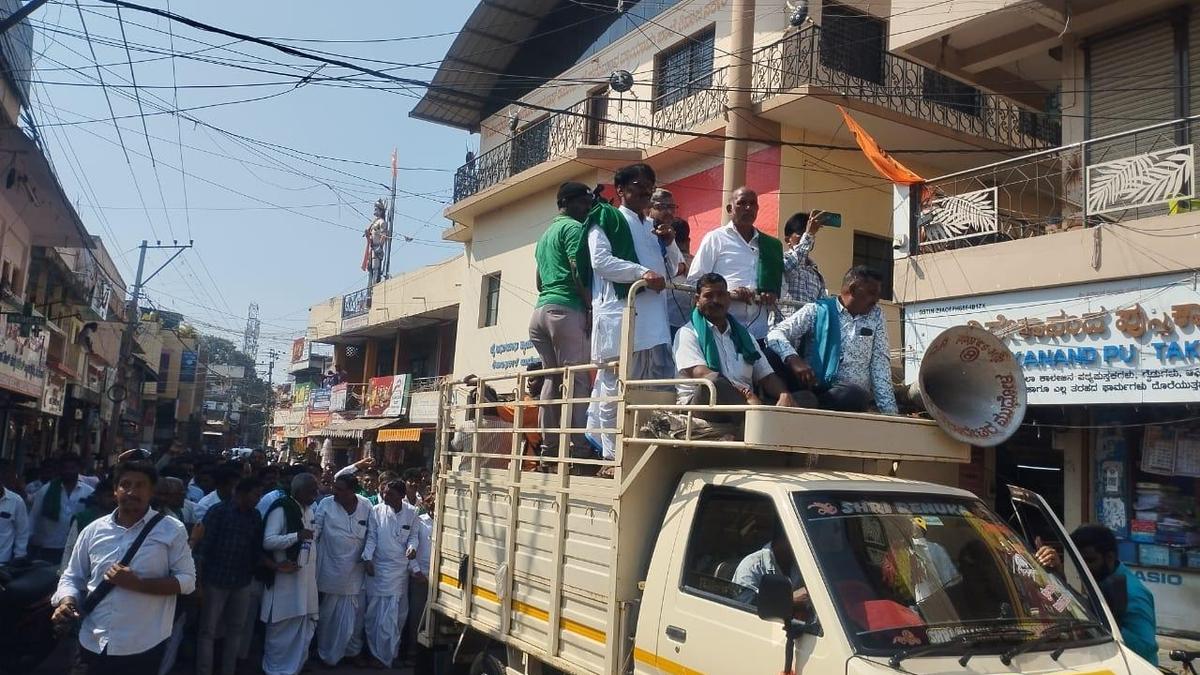 In Mudhol, farmers took out a bullock cart rally and tried to lay a siege to government offices.