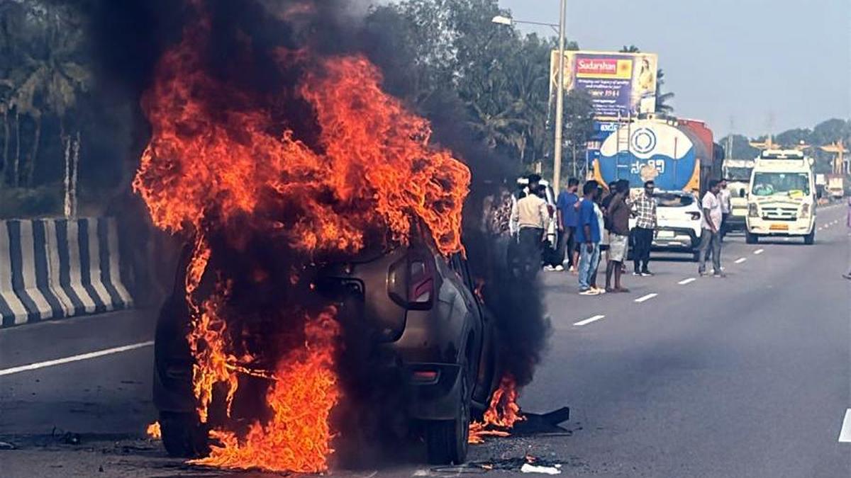 Fire and Emergency Services personnel doused the blaze and cleared the charred vehicle, after which traffic was restored around 5.30 p.m., the police said.