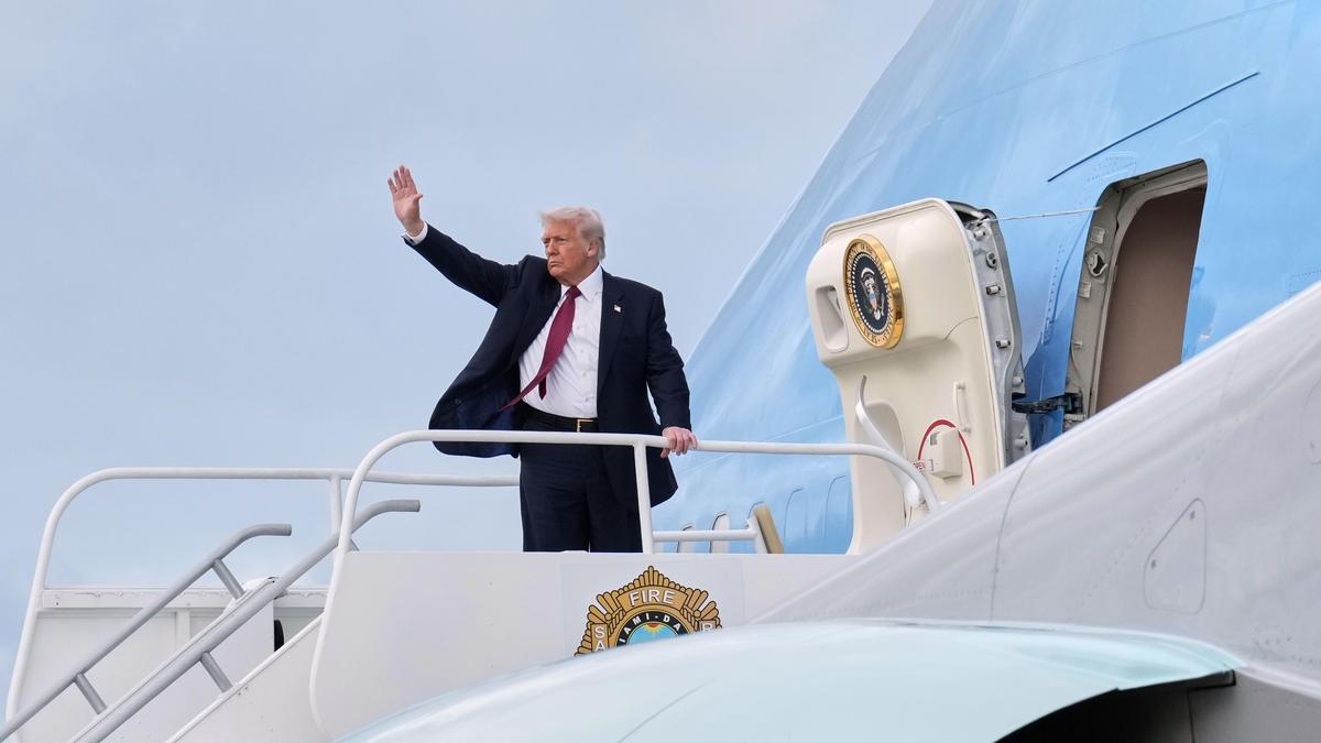 President Donald Trump boards Air Force One, on November 5, 2025, at Miami International Airport in Miami, en route to Washington.