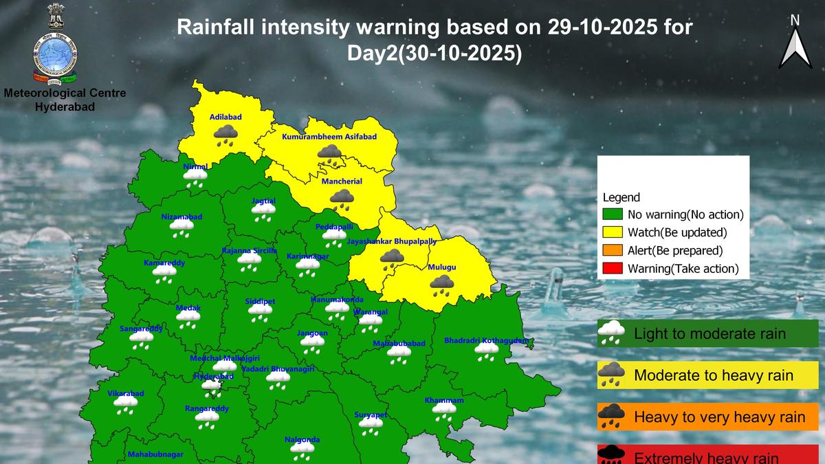 With Cyclone Montha weakening into a deep depression and expected to further weaken into a depression by the end of Wednesday (October 29, 2025) end, the India Meteorological Department (IMD) has issued a heavy rainfall warning for five Telangana districts for Thursday (October 30, 2025).