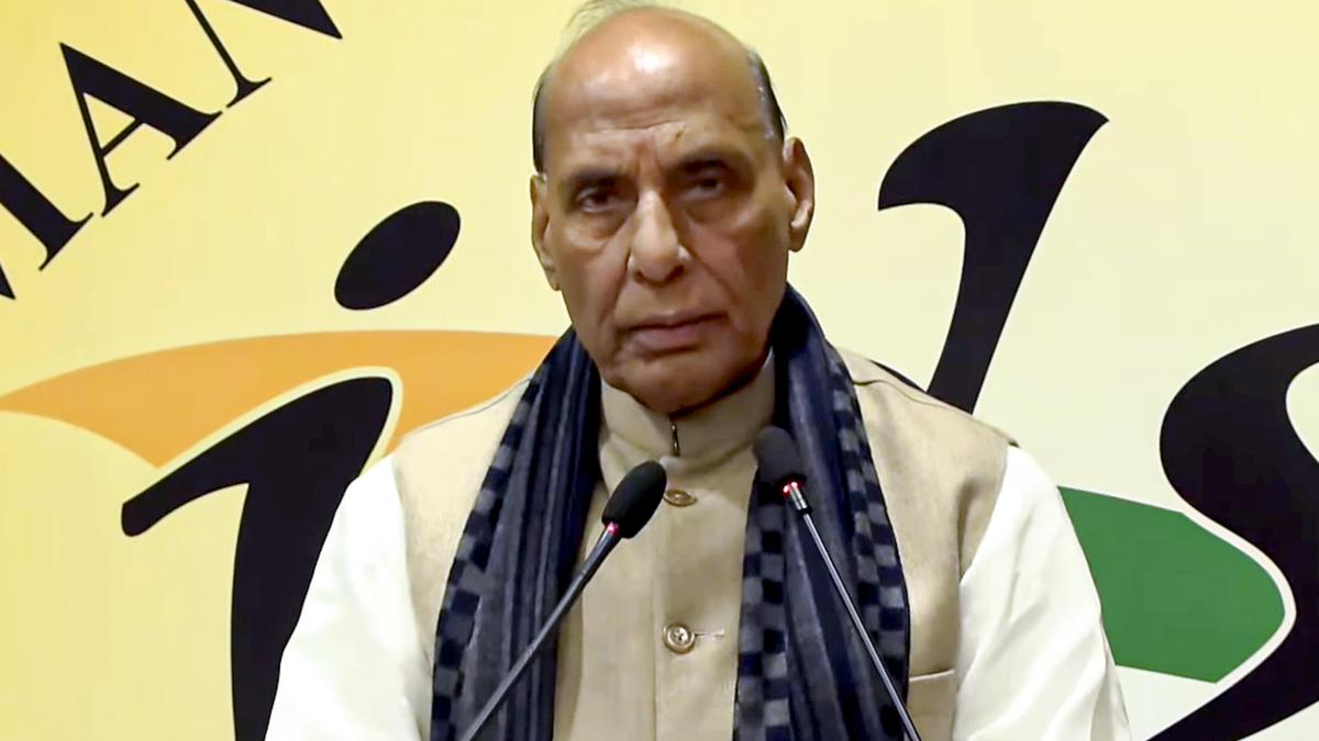 Defence Minister Rajnath Singh addresses the Delhi Defence Dialogue 2025, in New Delhi, on November 11, 2025.