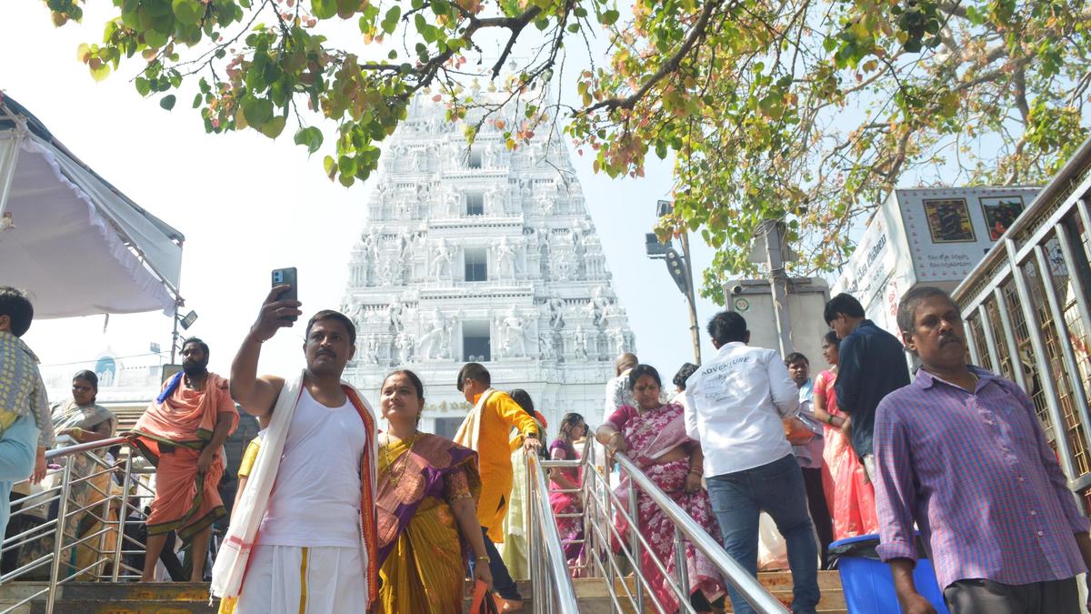 Devotees returning from darshan at Sri Veera Venkata Satyanarayana Swamy Vari Devasthanam temple at Annavaram in Kakinada district.