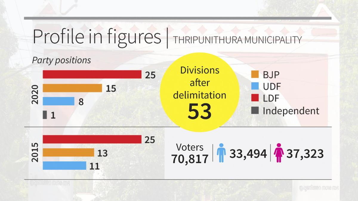 The Thripunithura municipality governed by the Left Democratic Front (LDF) is set to witness a tight three-cornered contest in the upcoming local body elections.