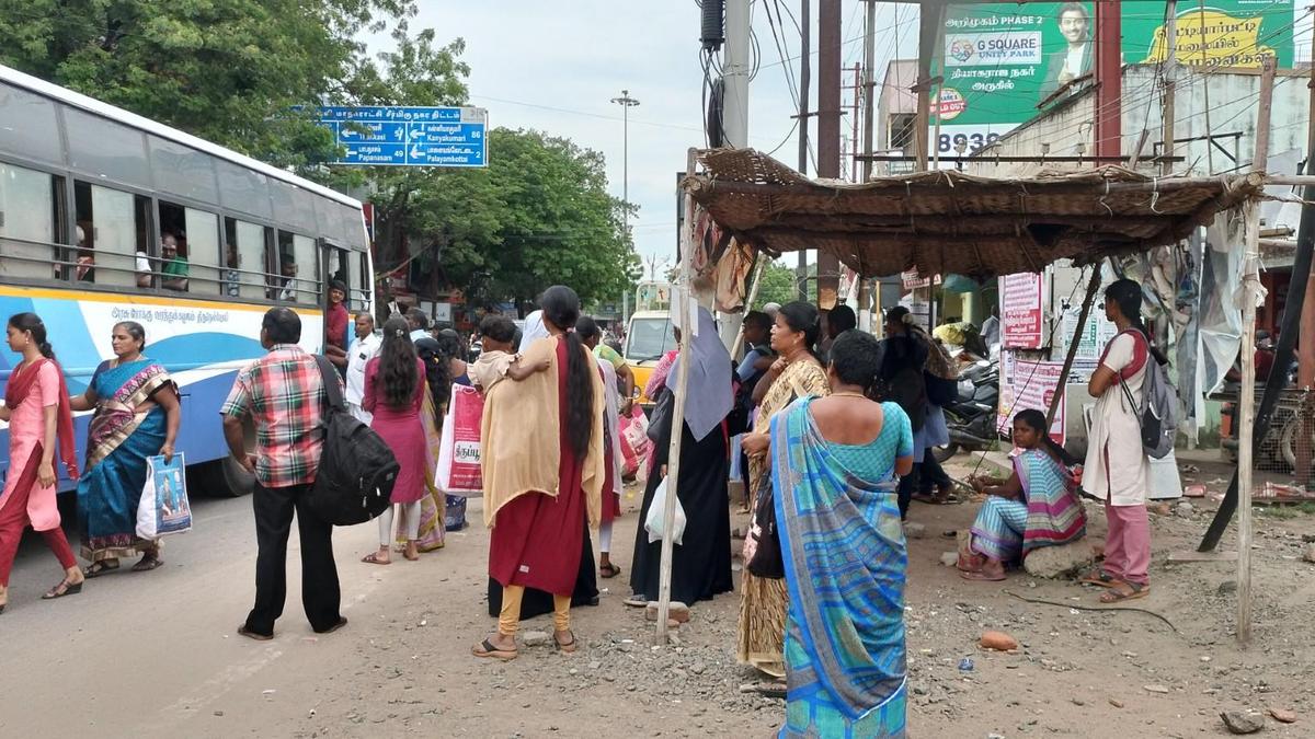The thatched roof bus stop shelter at Samathanapuram corner in Palayamkottai.