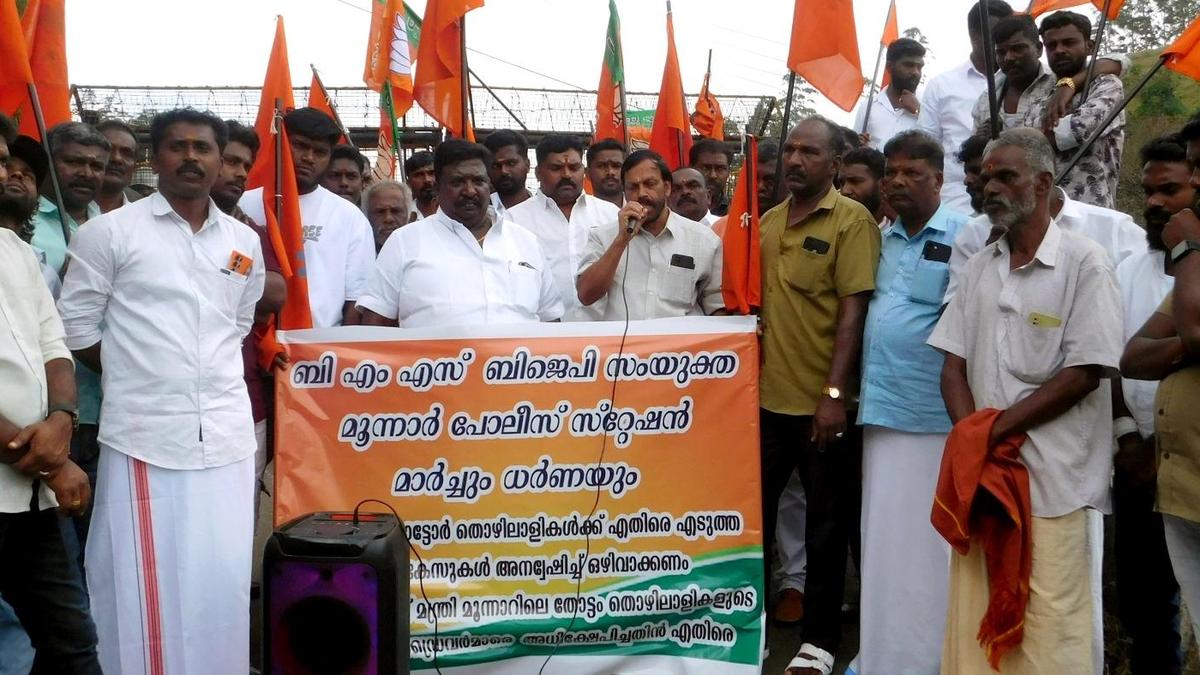 The BJP and BMS take out a march to the Munnar police station on Wednesday.