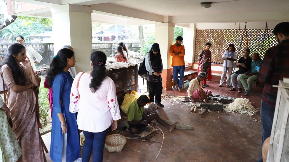 Basket weaving was demonstrated by artisans Babu Koraga Kadthala and Ammi Koraga Kadthala, while Sadananda Gudiga Keruwashe and Prashant Gudiga Keruwashe led the Kadegolu-making session. Participants were introduced to the natural materials, hand tools and time-honoured techniques involved in both crafts.