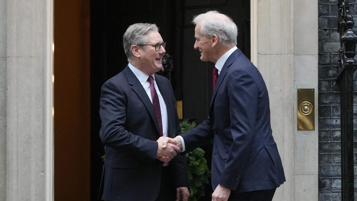 Britain’s Prime Minister Keir Starmer (L) shakes hands with Norway’s Prime Minister Jonas Gahr Store (R) as the latter arrives at Downing Street for a visit in central London on December 4, 2025.