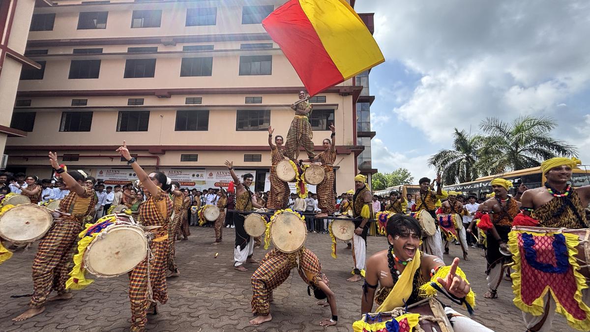 The guests offered floral tributes to the portrait of Goddess Bhuvaneshwari. They were escorted to the stage by a North Eastern cultural troupe even as North Eastern students of Alva’s rendered the Nada Geethe, which was widely appreciated. The students performed a captivating Dollu Kunita on the occasion exhibiting their enthusiasm for Karnataka’s culture.