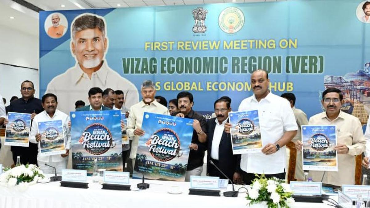 Chief Minister N. Chandrababu Naidu, accompanied by Tourism Minister Kandula Durgesh, unveiled the poster for the annual ‘Visakha Utsav’ tourism festival, scheduled to take place in the city from January 23 to 31 on Friday during the first review meeting on the development of the Visakha Economic Region, chaired by the Chief Minister.