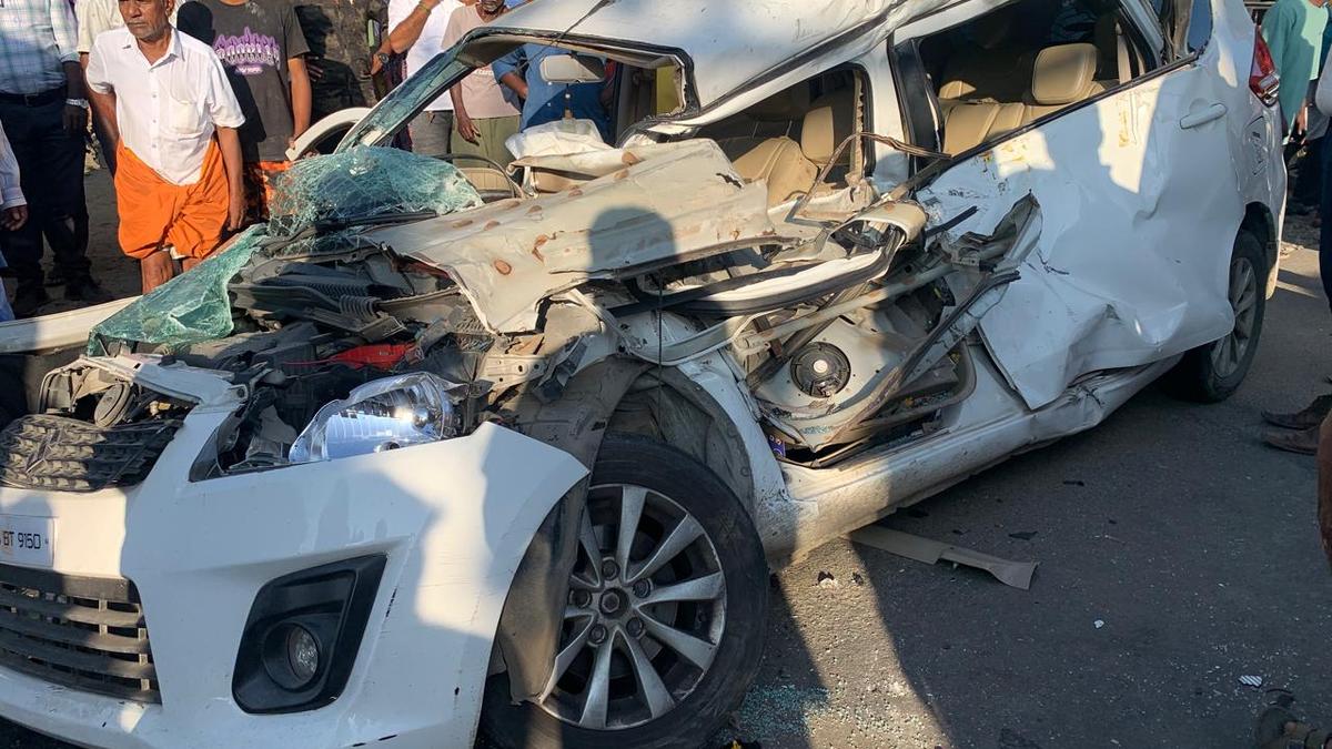 The car that met with an accident at Mettupalayam in Coimbatore district on Friday, November 21, 2025.