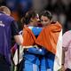 India’s captain Harmanpreet Kaur touches feet of coach Amol Muzumdar as they celebrate after winning the match during the ICC Women’s World Cup Final match India vs South Africa at the DY Patil Stadium in Navi Mumbai on Sunday.