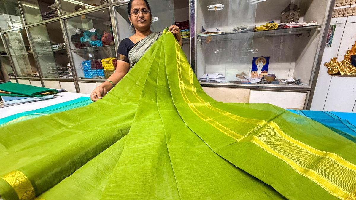 The Woraiyur cotton sari that was granted a Geographical Indications (GI) tag on Tuesday.