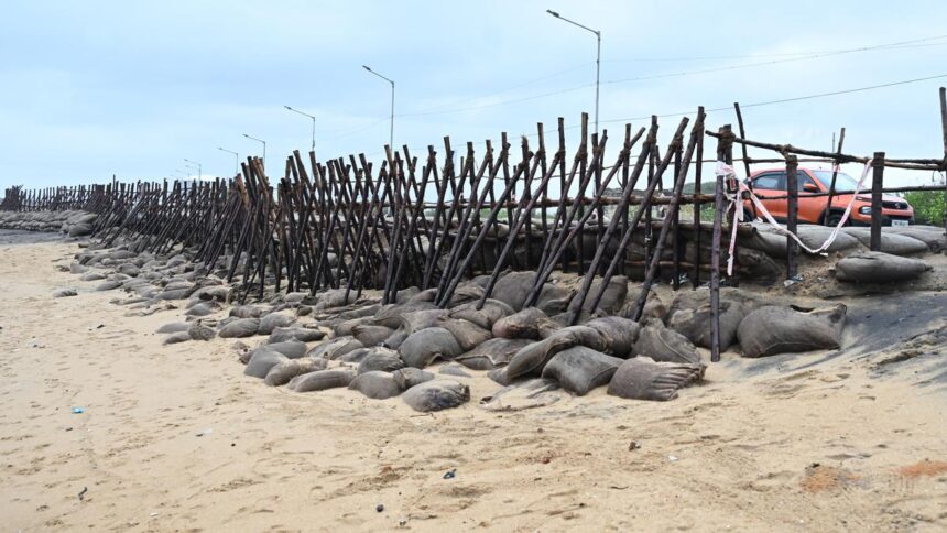 Preparations apace on Beach Road in Visakhapatnam for the International Yoga Day celebrations scheduled for June 21.