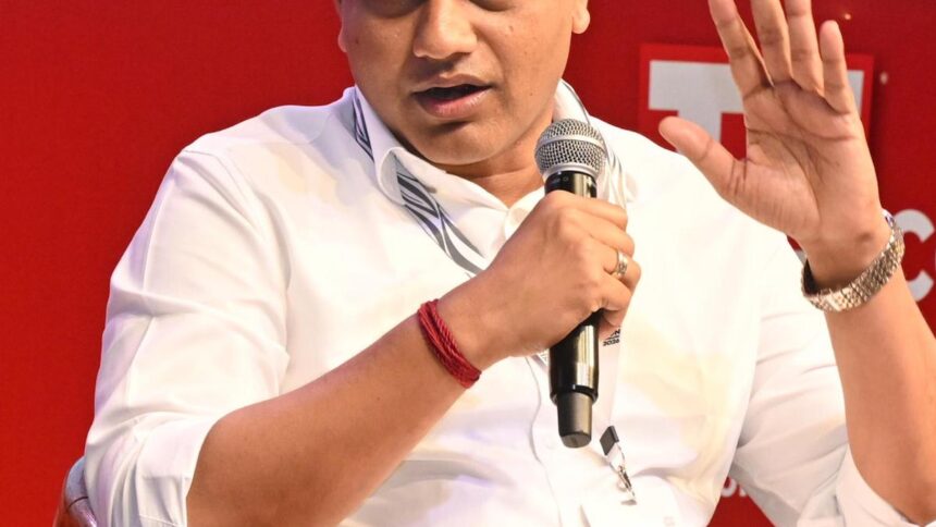 Former Minister Gudivada Amarnath has alleged that a conspiracy is underway to regularise 54.79 acres of government land, worth ₹ 5,000 crore, in favour of a noted educational institution, linked to Visakhapatnam Member of Parliament, M. Sribharat.